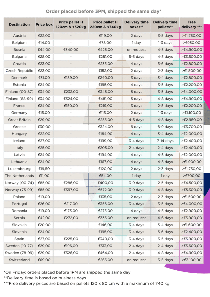 As soon as the order has been registered with the carrier, you will receive a track & trace e-mail.